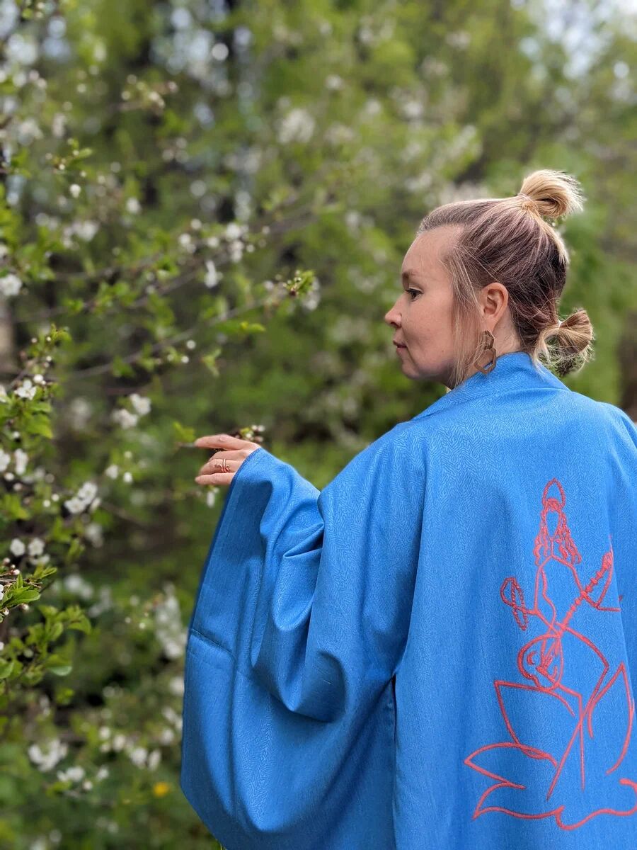 Я люблю создавать для себя одежду. Сегодня расскажу про мое новое кимоно с рисунком "Сарасвати".